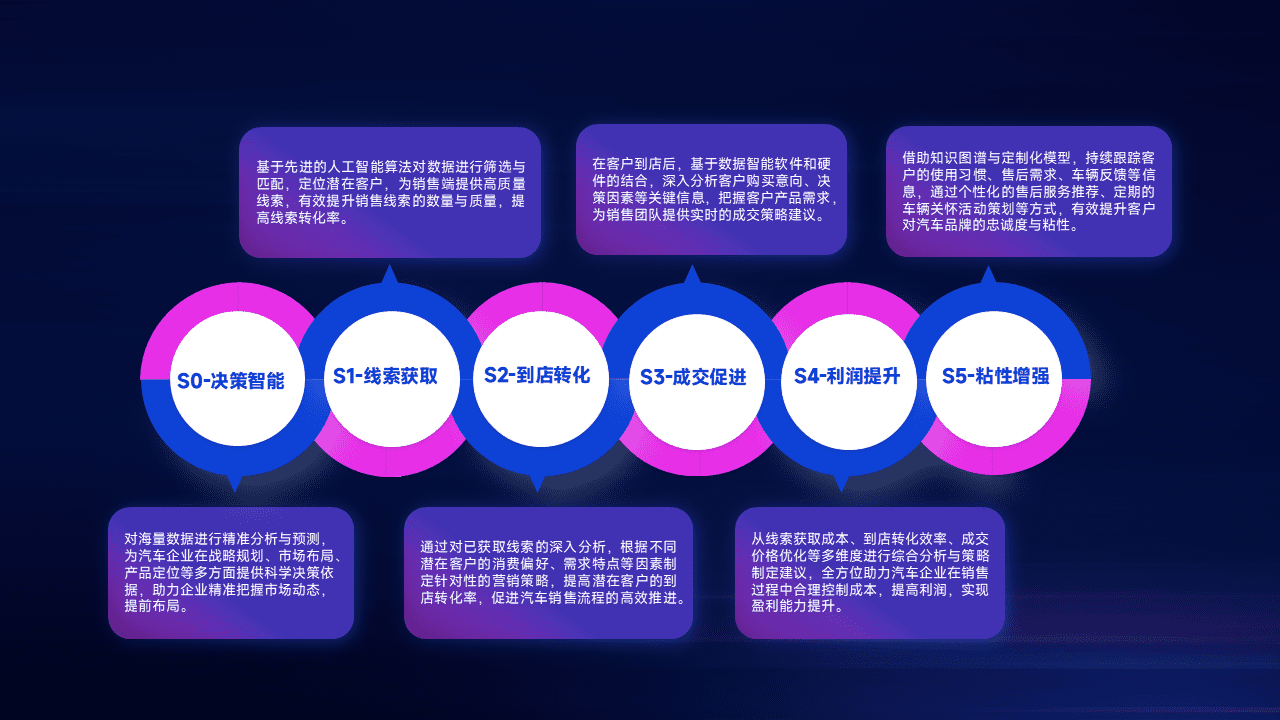 通过拓宽潜在客户来源、、、、优化线索分配并提高到店转化率,,,以增强销售效率。。。同时,,,利用线索数据不断优化分析模型,,有效提升转化率,,,扩大营销影响力。。。。
